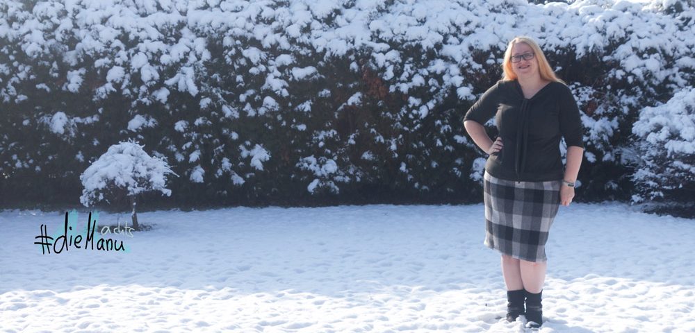 Der Rock war tatsächlich recht schnell genäht. Keine Frage. Ich muss mir aber in Zukunft angewöhnen, dass ich die Kanten der Stoffe vorher versuche auszufransen, bevor ich sie vernähe. Beim Loden nahm ich ja an, dass der Stoff nicht fransen wird deswegen habe ich einfach mit der Nähmaschine genäht, ohne die Kanten zu versäubern. Aber was ist? Er franst wie ein Wollknäuel, das unter die Katze gekommen ist. Nothing more to say. Außerdem habe ich dann beim Absteppen des Gummibandes nicht immer alle Kanten getroffen somit schaut der Rock von innen aus wie eine Katastrophe. Aber gut, das ist nun mal so, wenn man „mal schnell“ etwas nähen will und muss. Ich werde für die Innenkanten noch Schrägband aufnähen, damit es nicht schlimmer wird.